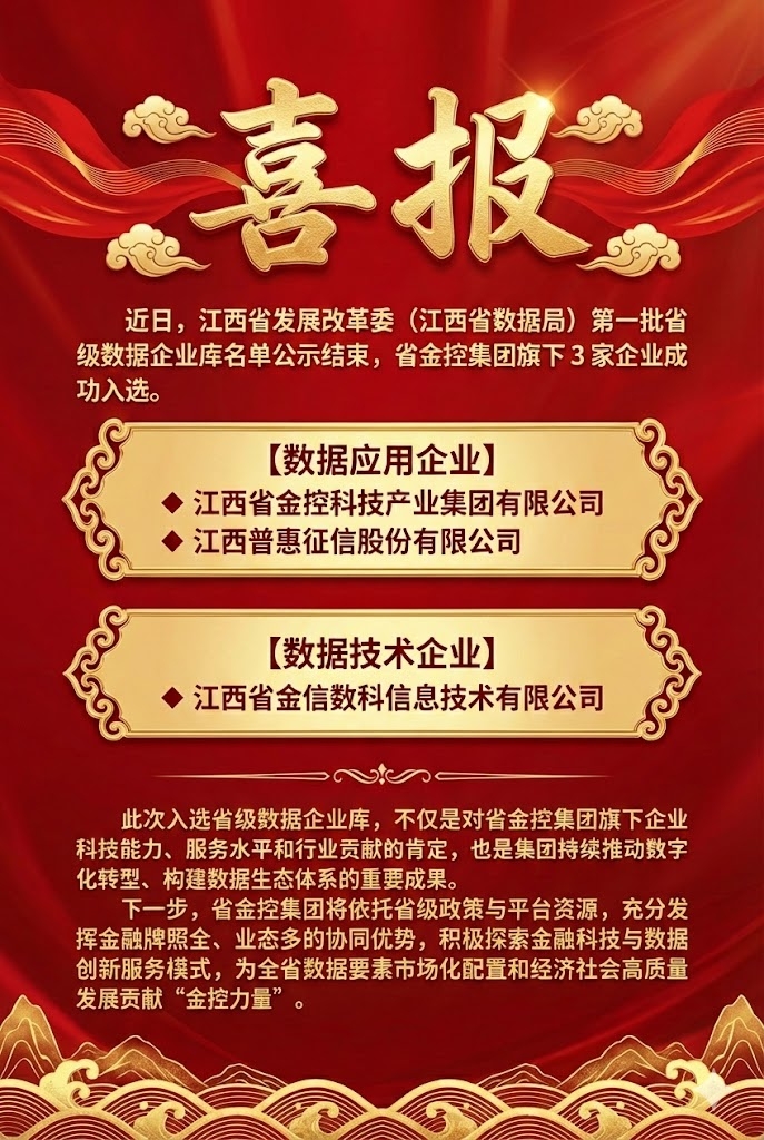 喜报!省金控集团旗下3家企业成功入选省级数据企业库