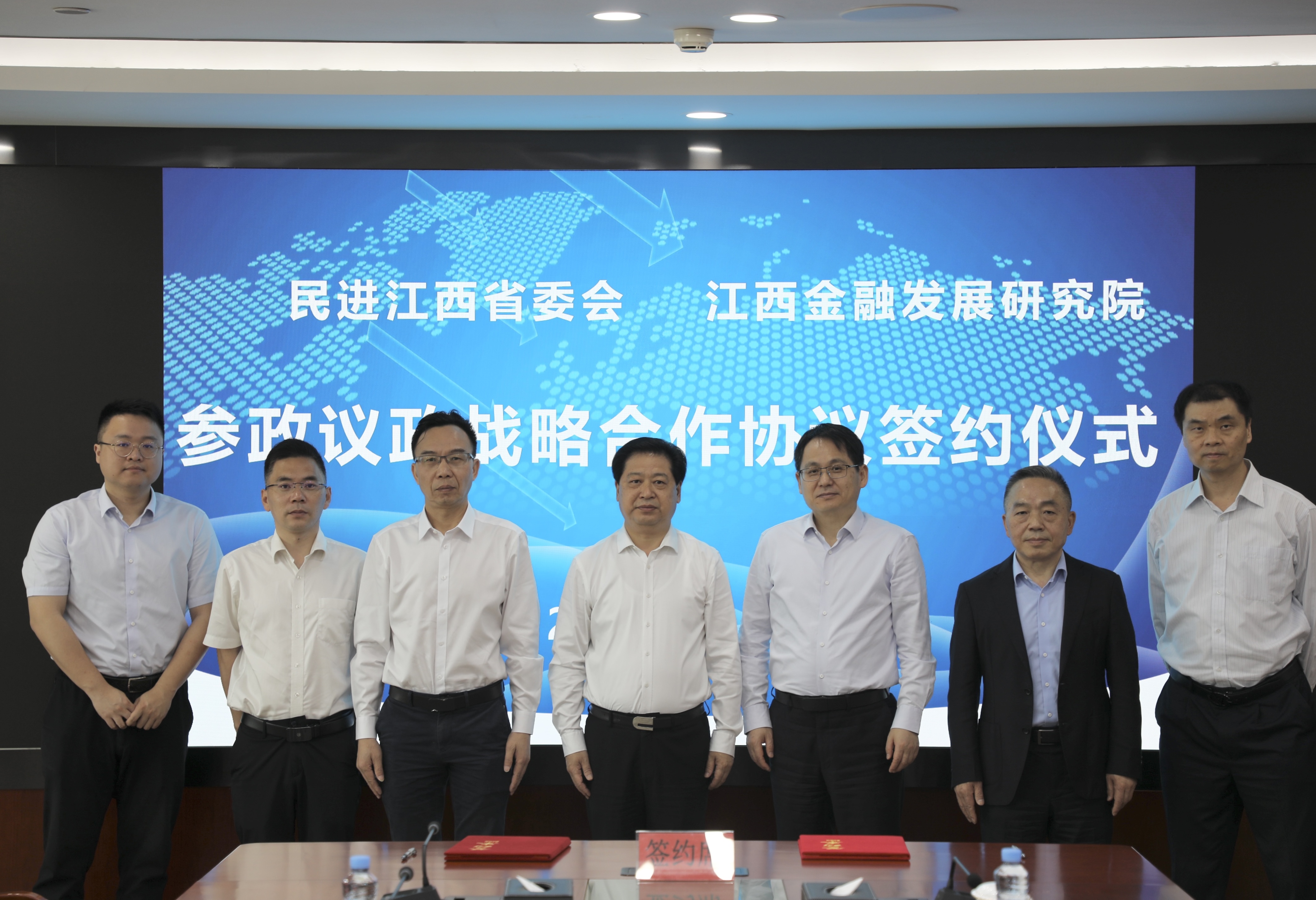 5月16日,民进江西省委会与江西金融发展研究院签署参政议政战略合作协议。省政协副主席、民进江西省委会主委卢天锡,省金控集团党委副书记、副董事长、总经理熊一江分别致辞并见证签约,省金控集团党委委员、董事潘淦主持签约仪式。民进江西省委会副主委胡国良、江西金融发展研究院院长肖峻介绍有关情况并代表双方签约。
